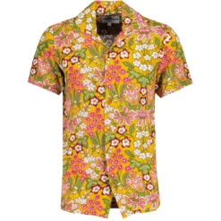Rock-a-Hula Retro Rayon Floral LS Revere Collar Shirt Mustard