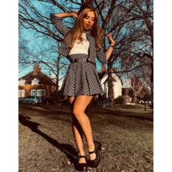 – Madcap England ‘Ace’ retro pleated tennis skirt in black and white.
