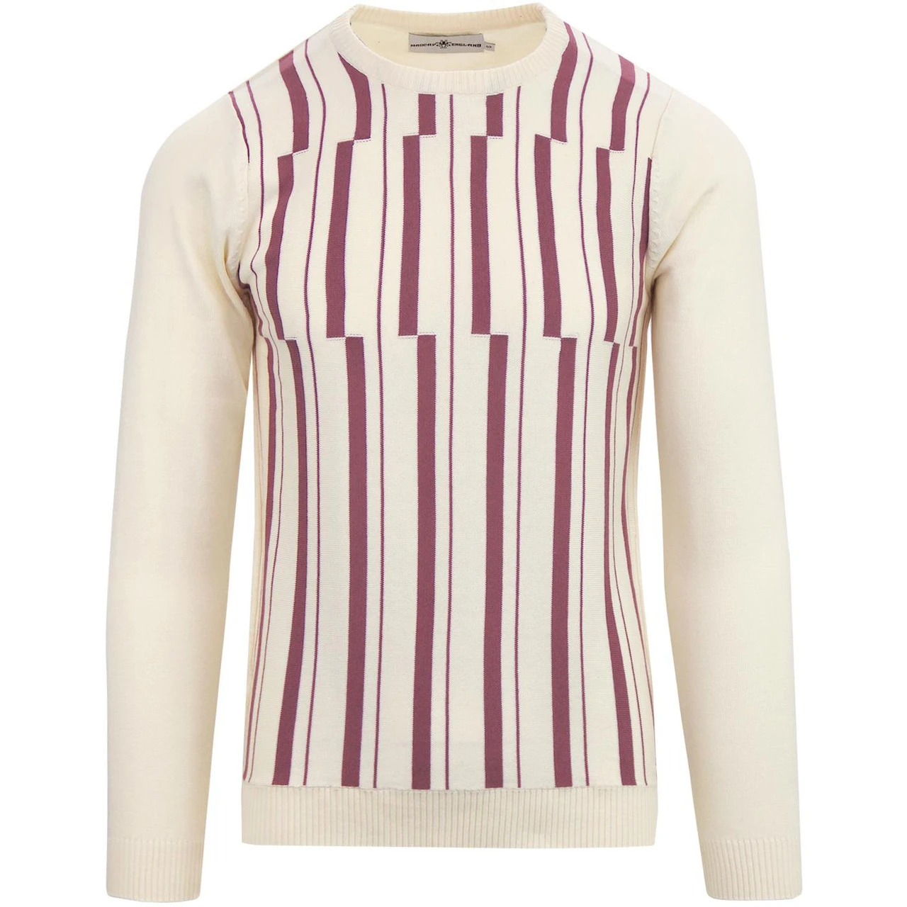 - Madcap England ‘Amadeus’ retro abstract stripe crew neck jumper in eggnog.