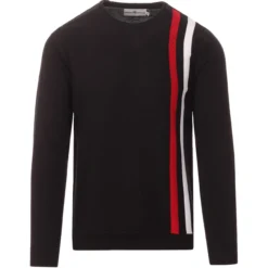 – Twin retro racing stripes run down the left side of the jumper.