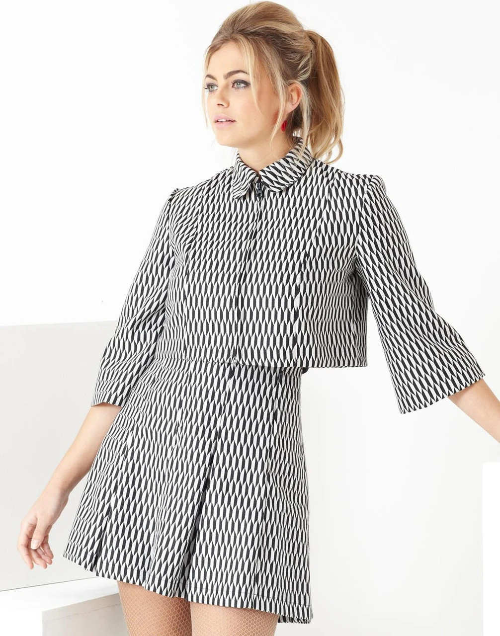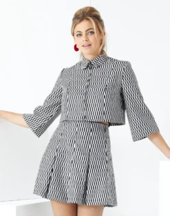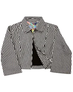 – Madcap England ‘Bijoux’ 60s mod geo circle pattern bolero jacket.