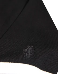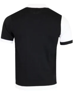 – Madcap England ‘Capone’ men’s mod knit polo shirt in black and white.
