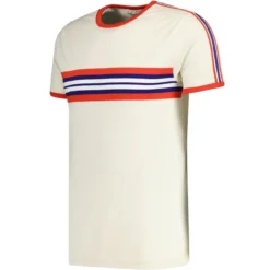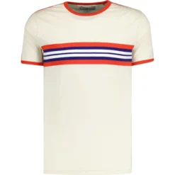 - Madcap England Cassette men’s retro chest stripe tee in rosin.