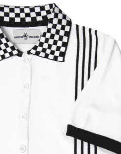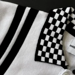 - SKU: MC353 Checkerboard Collar Polo Cardigan.