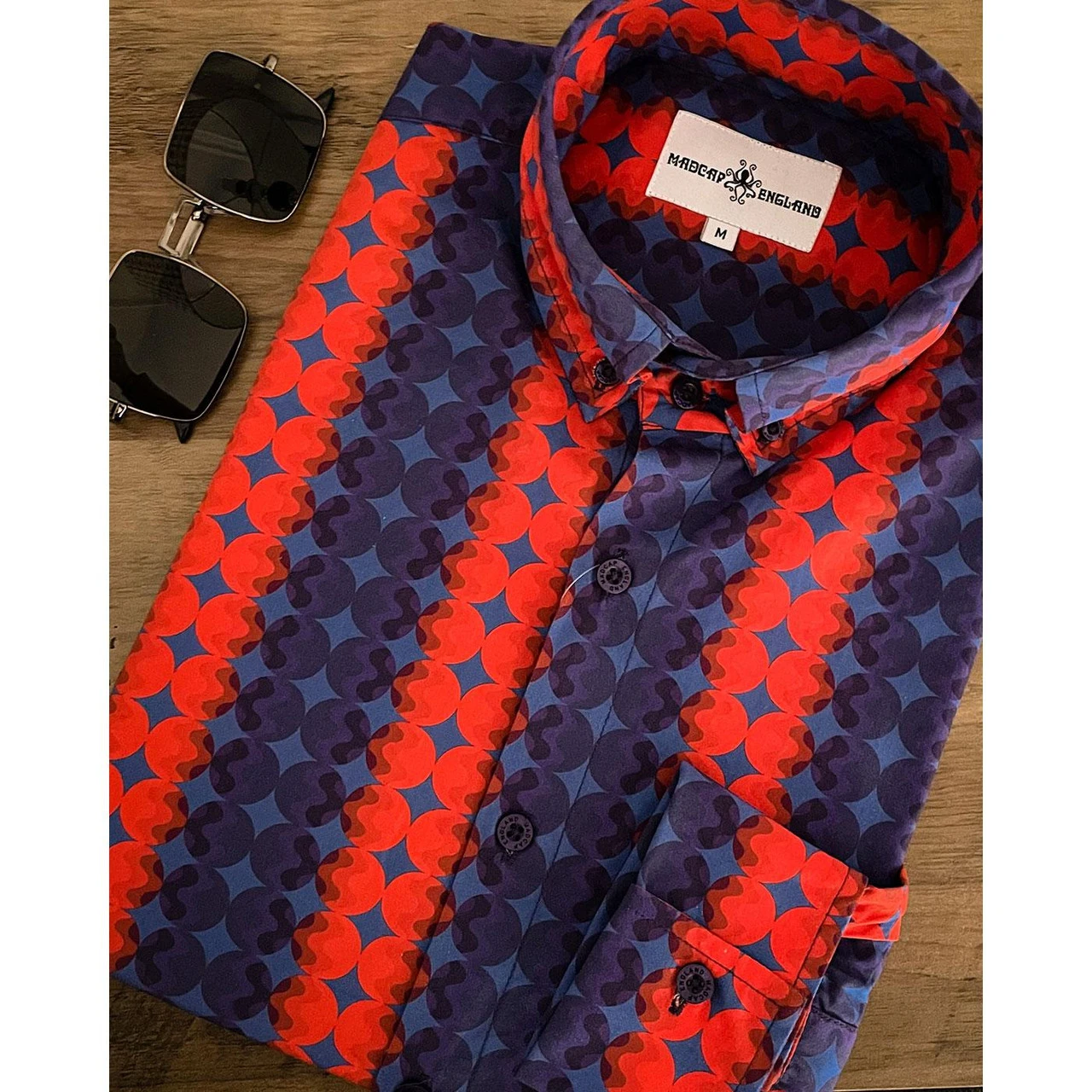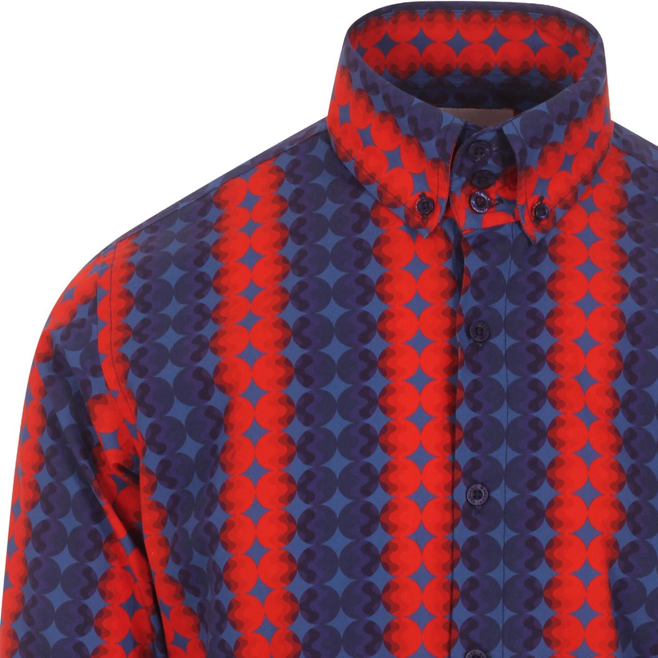 - SKU: MC547 Men’s High Collar Shirt Blue/Red Dot.