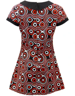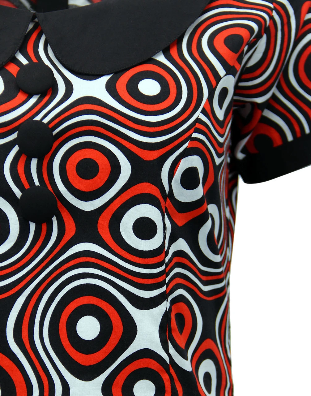 - Madcap England ‘Dollierocker Op Art’ 60s Mod Peter Pan Collar Dress in blue, black and white.