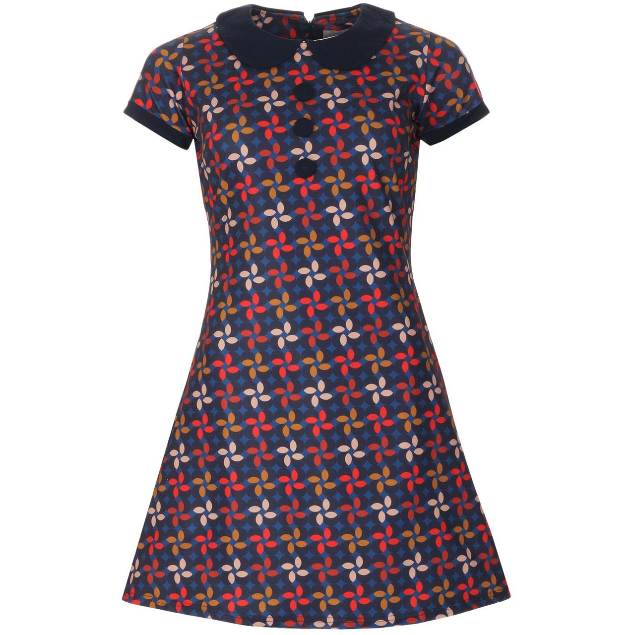 - Madcap England Dollierocker Retro Petals 1960s mod Peter Pan collar dress.