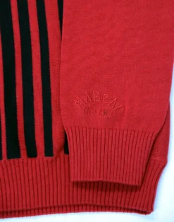 Key Points: Madcap England ‘Everly’ button through polo cardigan with stripes. Polo collar, ribbed hem and cuffs. Embroidered sign off to left sleeve.