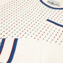 The Hawkins Jumper in snow white is an extension to our established Coltrane and Miles styles and features a stylish textured retro jacquard front panel that incorporates red and blue accents. The colour pop detailing weaves in and out of the raised snow white horizontal ribbed stripes to create an awesome vintage effect. The vibrancy is further enhanced by the retro tipped crew neck collar, faux pocket welt and cuffs. The Hawkins Mod Jacquard Knit Jumper works great as part of a smart-casual outfit. Pretty much perfect for any occasion!