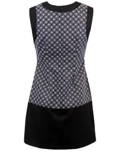 Key Points: Madcap England ‘Hepburn’ Retro Mod mini dress. Floral Op Art design with contrast block colour trims.