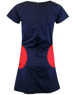 Key Points: Madcap England ‘Honey’ block panel airline dress with circle pockets. A-line mini dress with zip to back, short sleeves and rounded neckline.