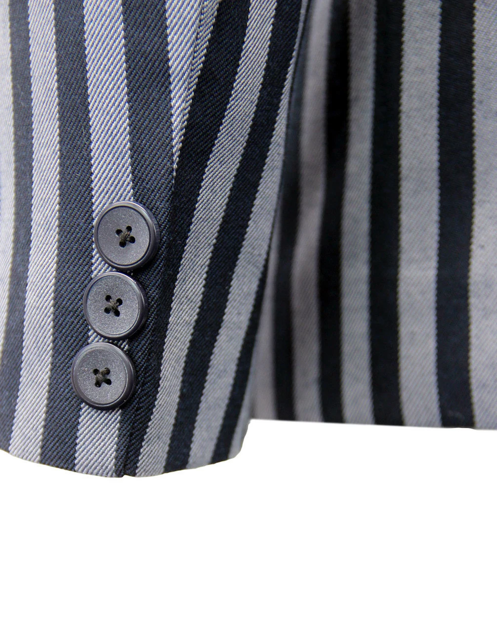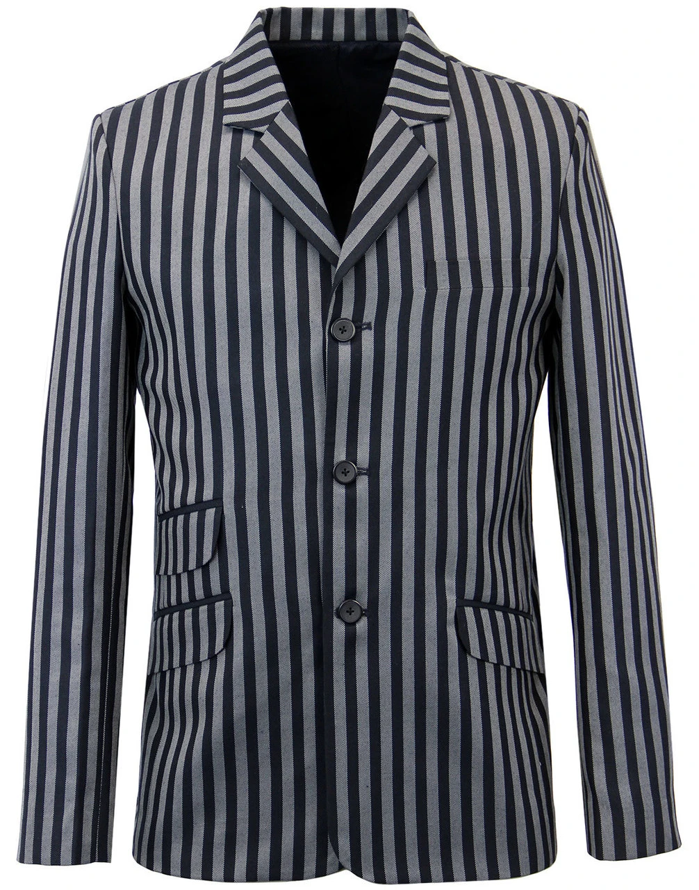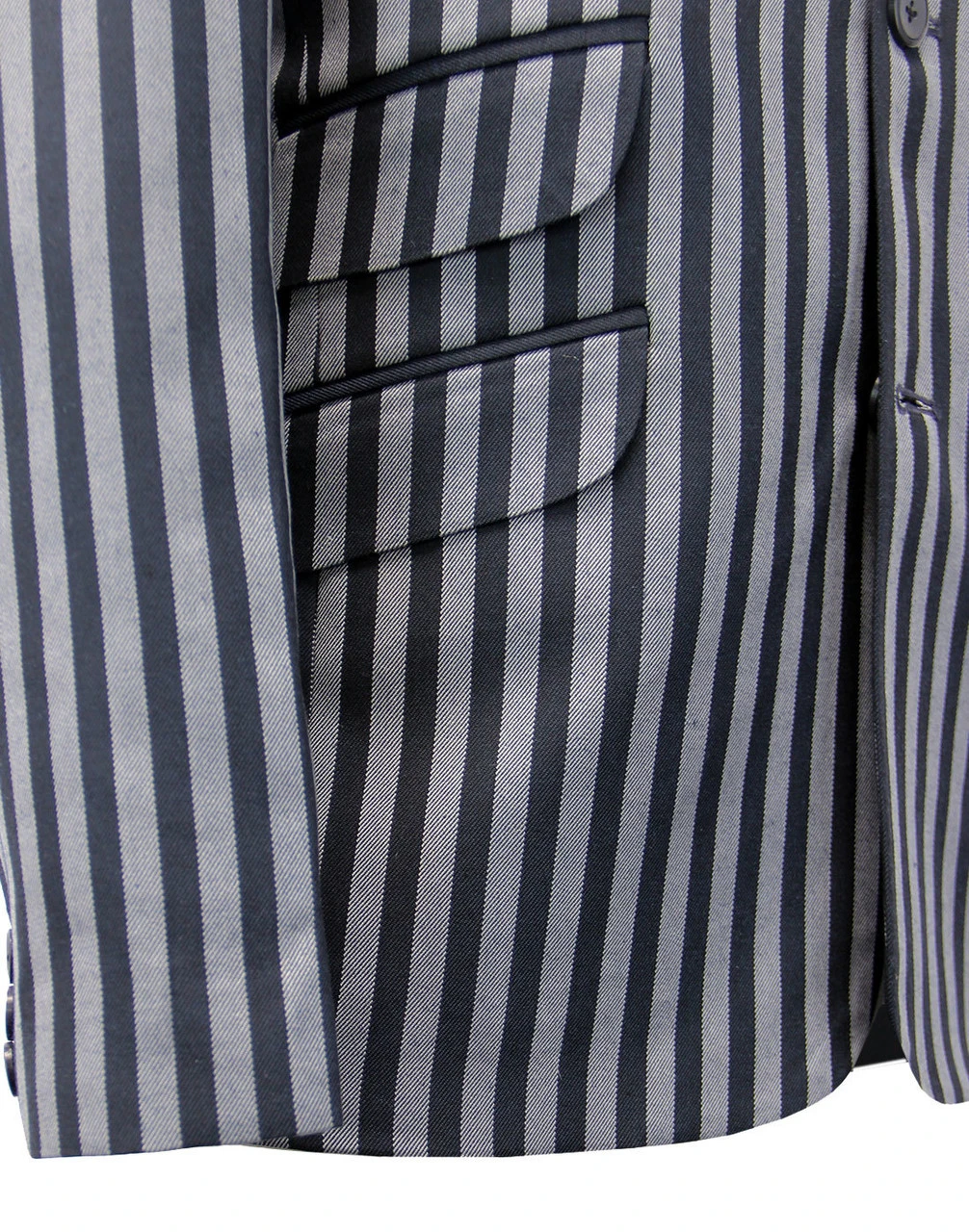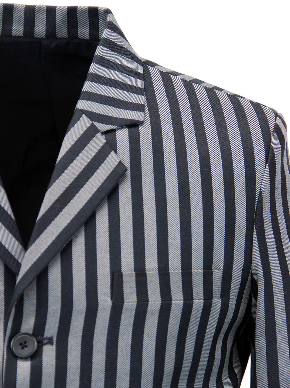 Key Points: Madcap England ‘Meadon’ regatta stripe boating blazer with 3 button singe breasted fastening. Notch lapel, ticket pocket and centre vent.