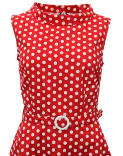 Key Points: Madcap England ‘Minnie’ mini dress with flared skirt, fitted bodice and cute belt detail. Striking circle geo print throughout.