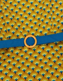 – Retro circle buckle detail to fabric belt.