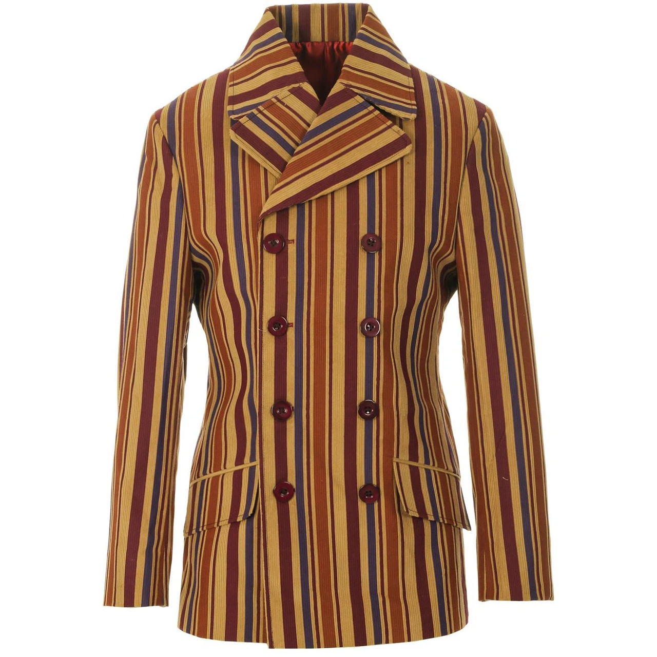 - Madcap England ‘Rare Breed Stripe’ men’s 60s mod cord double breasted blazer jacket in camel.