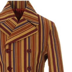 - Madcap England ‘Rare Breed Stripe’ men’s 60s mod cord double breasted blazer jacket in stone.