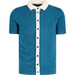 - Madcap England ‘Salton’ retro terry towelling shirt in celestial blue.