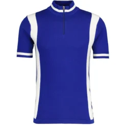 Vitesse is one of our archive styles. The classic mod knitted cycling top, inspired by 1960s road races, Vitesse features retro stripe side panels, stylish funnel neck collar and zip placket. Finished with tonal signature octopus embroidery to the left sleeve. Fine gauge knitted cotton construction and with retro stripe tipping to the collar and cuffs. In a striking sodalite blue colour, this Vitesse Cycling Top is the pinnacle of classic mod style!