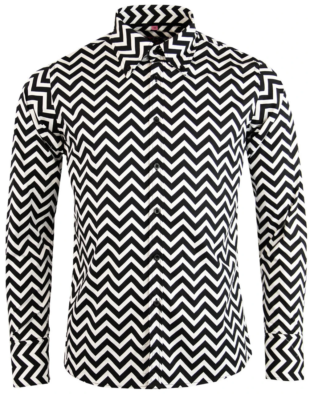 – Madcap England ‘Zig Zag Trip’ men’s retro Op Art shirt.